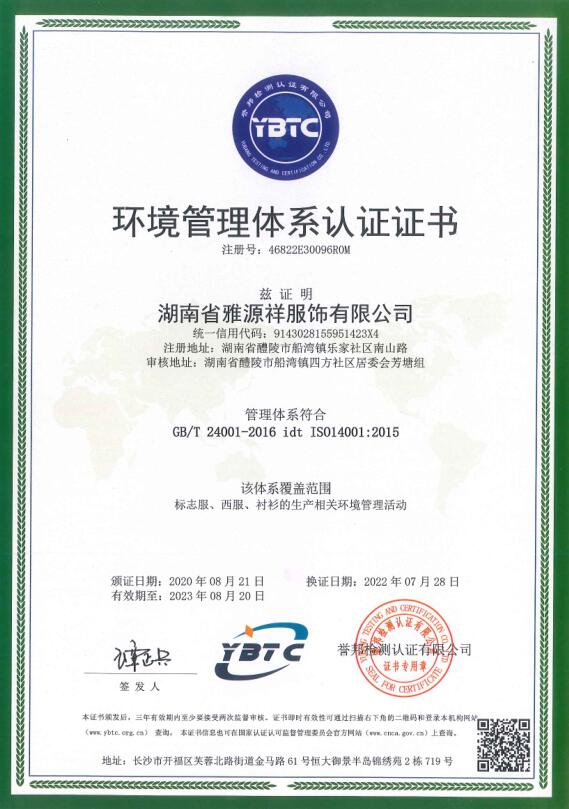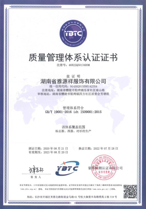 1、企業(yè)概況 湖南省雅源祥服飾有限公司地處湘贛邊境素有瓷城之稱的醴陵郊區(qū),企業(yè)創(chuàng)建于1995年,是行政執(zhí)法制服、被裝的生產企業(yè)。2、組織機構 跟隨改革開放的步伐,我公司不斷發(fā)展壯大,公司董事會下設總經理辦公室、生產部、技術部、質檢部、財務部、采購部、業(yè)務部等部門,下設有流水線西服生產車間、標志服生產車間、襯衣生產車間、... [更多]